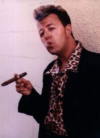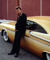 refers to as leading a "Kustom Lifestyle"Q: When did you start smoking cigars? What do you like about them? A: I guess I've been smoking five or six years now. My great grandfather used to smoke cigars. We'd go there and I use to sit and love that smell. I started smoking during poker games, then more and more I started smoking cigars. Now I've smoked daily for the past 3 or 4 years. I never smoked cigarettes. My dad did one of those things where I was a wise guy and my dad gave me a pack of cigarettes to smoke and I turned green! Nowadays, they'd call that child abuse! But I never started smoking cigarettes after that. Cigars are a lot different culturally, physically, it's very relaxing. You don't inhale them, every once in awhile you get a puff down there, but it's the lesser of two evils. Q: Are you part of this big, trendy cigar craze? A: I don't like that Cigar Aficionado, that's just a snotty, crummy thing! That's not what it's about! I like an expensive cigar, I like a Cuban. I was smoking White Owls at my mom's wedding! I just like a good smoke. During the day, I don't want a strong cigar, it could be just anything, as long as I'm smoking something. I like that hand-rolled stuff at the local tobacco shop, they're pretty quality and reasonably priced. I kind of change my tastes. I like a good Monte Cristo at night, when you want to blow 15 bucks. I like a good Dunhill or hand-rolled cigar. Q: You're a dad too, how is fatherhood? A: I am a father-hood! Being a dad is great. I have a nine year old son, Cody, he's a little surfer dude. He's got blond hair with a little wave in the front. He's gotta get the hair right in the morning, combs it, puts grease in there! Hair's gotta be right, clothes gotta be right! He's a good boy. He's into go-carts and surfing, outdoors stuff. I'm lucky, he's a friend. We hang out and do silly stuff, model airplanes. I love that - I love to build model airplanes, rockets, cars! Q: Has that changed your perspective on life? A: You gotta be more responsible. I'm good with a little boy because I like all that stuff. But yeah, getting up and going to school, you gotta be there! So that's changed, I still go out but you gotta remember you got a little guy around. So that's the only way it's really changed. It's fun. Q: You pulled up in a beautiful classic car, is that your latest passion? A: I'm really super into cars. I don't even care as much about guitars now, I just want cars! I built a '58 Chevy by myself, my son painted the wheels, I scraped all the asbestos off the headliner, all the 50's crap, my wife put the carpet in. Now we gotta fill up the holes and paint it, put flames on it. I just build them as much as I can by myself now. I can't rebuild an engine and drop it but I can do the cosmetics. I have 3 old cars, I have the '57 Dodge, '58 Chevy we built and '60 convertible Cadillac. Those are my daily cars. I gotta get one of those 4 wheel things I guess, I'm really holding out. I think I can do it all in the Caddy! Q: Do you go to a lot of car shows now? A: I went to the open roadster show, that was a little disappointing - how much money you got to build a car - that's not what it's about. It's about building a cool hot rod! There's a couple of cool hot rod clubs down in Orange County, I like hanging out with those guys. I brought Strummer down and he was in heaven. They didn't really know who he was. We were playing some songs and someone yelled out "London Calling" and he played it! His wife even said, "He's never played that for me!" It was nice feeling, it was like "our people," it was great! Q: You've talked about living a "Kustom Lifestyle," what is that? A: The Kustom Lifestyle is not about one kind of music, it's not about just rockabilly or psychobilly. It's just about the kind of people who like to kind of go against the grain. It's definitely about old cars, but it's about fixing them up in your own style, making them custom or hot-rodding them. It's also about style in the way you dress whether it be rockabilly style or swing style. It's about thought going into your daily life. Like I would never go out in a pair of sneakers and jeans with my hair not combed - it's never been done! It's about care and thought that goes into your daily regime. There's a lot of people who do that, in their look and in your daily life and the way you live. Q: If you wrote the Book Of Cool, what would you have in it? A: A lot of people on the scene help each other, they just do stuff for free, like if your car needs something. There's a real sense of community and the first time around it wasn't like that, people were cutting each other, saying your band sucks, a lot of bad stuff. This time around, people are really helping each other, that's cool. I think it's cool when I see my son combing his hair in the morning, he's got a style going already and it's important to him. That's cool stuff. Having cool cars and cool clothes, that's what it's about but it's also about your actions and how you take care of people. Like I got a friend, if I asked him for 500 bucks at 4 in the morning, he would be there, no questions asked. It's friendship and that's cool. It sounds kind of syrupy but it's not, that's what being cool is about. Copyright 1996, Lazar Productions. |
